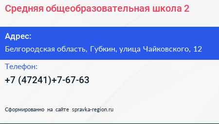 Средняя общеобразовательная школа №2 по адресу Белгородская область, Губкин, улица Чайковского, 12 в дальнейшем Организация, размещена в следующих категориях: