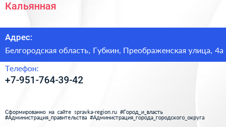 Кальянная по адресу Белгородская область, Губкин, Преображенская улица, 4а в дальнейшем Организация, размещена в следующих категориях: