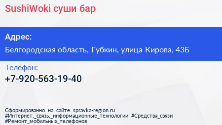 SushiWoki, суши-бар по адресу Белгородская область, Губкин, улица Кирова, 43Б в дальнейшем Организация, размещена в следующих категориях: