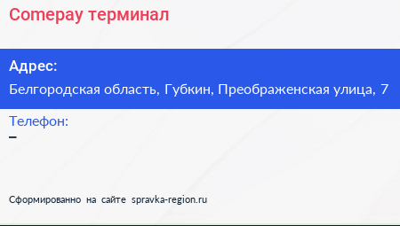 Comepay, терминал по адресу Белгородская область, Губкин, Преображенская улица, 7 в дальнейшем Организация, размещена в следующих категориях: