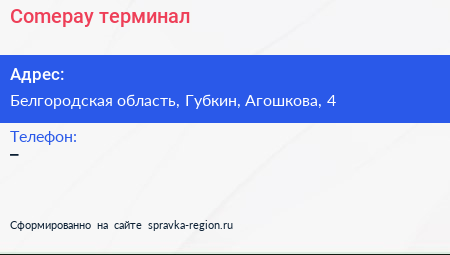 Comepay, терминал по адресу Белгородская область, Губкин, Агошкова, 4 в дальнейшем Организация, размещена в следующих категориях: