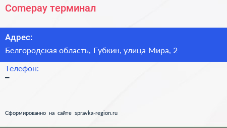 Comepay, терминал по адресу Белгородская область, Губкин, улица Мира, 2 в дальнейшем Организация, размещена в следующих категориях: