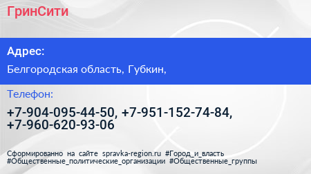 ГринСити по адресу Белгородская область, Губкин, в дальнейшем Организация, размещена в следующих категориях: