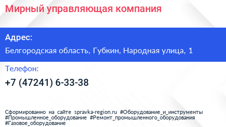 Мирный, управляющая компания по адресу Белгородская область, Губкин, Народная улица, 1 в дальнейшем Организация, размещена в следующих категориях: