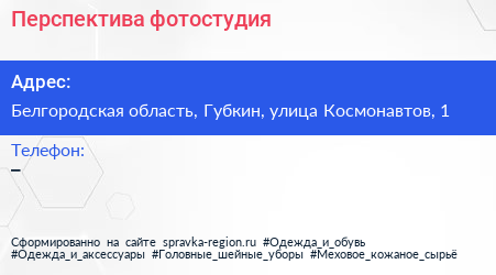 Перспектива, фотостудия по адресу Белгородская область, Губкин, улица Космонавтов, 1 в дальнейшем Организация, размещена в следующих категориях: