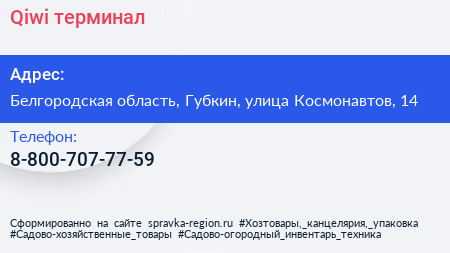 Qiwi, терминал по адресу Белгородская область, Губкин, улица Космонавтов, 14 в дальнейшем Организация, размещена в следующих категориях: