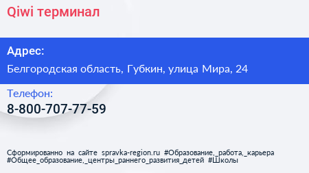 Qiwi, терминал по адресу Белгородская область, Губкин, улица Мира, 24 в дальнейшем Организация, размещена в следующих категориях: