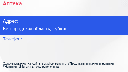 Аптека по адресу Белгородская область, Губкин, в дальнейшем Организация, размещена в следующих категориях: