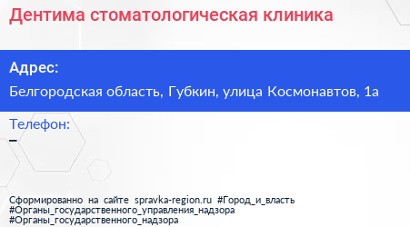 Дентима, стоматологическая клиника по адресу Белгородская область, Губкин, улица Космонавтов, 1а в дальнейшем Организация, размещена в следующих категориях: