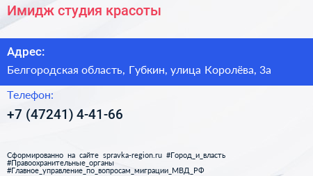 Имидж, студия красоты по адресу Белгородская область, Губкин, улица Королёва, 3а в дальнейшем Организация, размещена в следующих категориях: