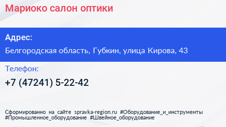 Мариоко, салон оптики по адресу Белгородская область, Губкин, улица Кирова, 43 в дальнейшем Организация, размещена в следующих категориях: