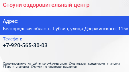 Стоуни, оздоровительный центр по адресу Белгородская область, Губкин, улица Дзержинского, 115в в дальнейшем Организация, размещена в следующих категориях: