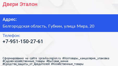 Двери Эталон по адресу Белгородская область, Губкин, улица Мира, 20 в дальнейшем Организация, размещена в следующих категориях: