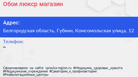 Обои люкср, магазин по адресу Белгородская область, Губкин, Комсомольская улица, 12 в дальнейшем Организация, размещена в следующих категориях:
