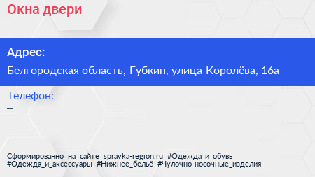 Окна двери по адресу Белгородская область, Губкин, улица Королёва, 16а в дальнейшем Организация, размещена в следующих категориях: