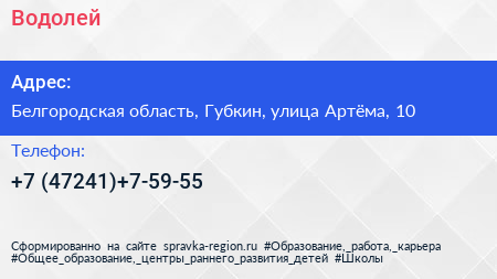 Водолей по адресу Белгородская область, Губкин, улица Артёма, 10 в дальнейшем Организация, размещена в следующих категориях: