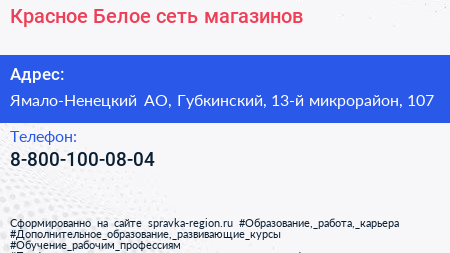 Красное & Белое, сеть магазинов по адресу Ямало-Ненецкий АО, Губкинский, 13-й микрорайон, 107 в дальнейшем Организация, размещена в следующих категориях: