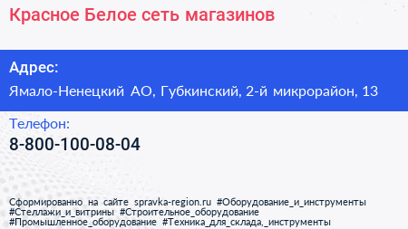 Красное & Белое, сеть магазинов по адресу Ямало-Ненецкий АО, Губкинский, 2-й микрорайон, 13 в дальнейшем Организация, размещена в следующих категориях: