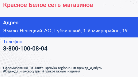 Красное & Белое, сеть магазинов по адресу Ямало-Ненецкий АО, Губкинский, 1-й микрорайон, 19 в дальнейшем Организация, размещена в следующих категориях: