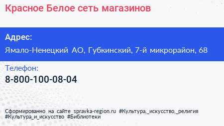 Красное & Белое, сеть магазинов по адресу Ямало-Ненецкий АО, Губкинский, 7-й микрорайон, 68 в дальнейшем Организация, размещена в следующих категориях: