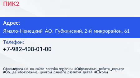 ПИК2 по адресу Ямало-Ненецкий АО, Губкинский, 2-й микрорайон, 61 в дальнейшем Организация, размещена в следующих категориях: