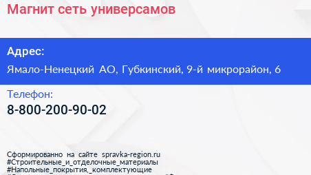 Магнит, сеть универсамов по адресу Ямало-Ненецкий АО, Губкинский, 9-й микрорайон, 6 в дальнейшем Организация, размещена в следующих категориях: