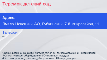 Теремок, детский сад по адресу Ямало-Ненецкий АО, Губкинский, 7-й микрорайон, 11 в дальнейшем Организация, размещена в следующих категориях:
