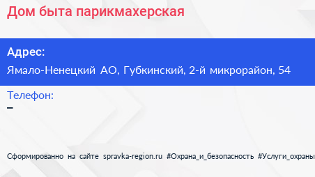 Дом быта, парикмахерская по адресу Ямало-Ненецкий АО, Губкинский, 2-й микрорайон, 54 в дальнейшем Организация, размещена в следующих категориях: