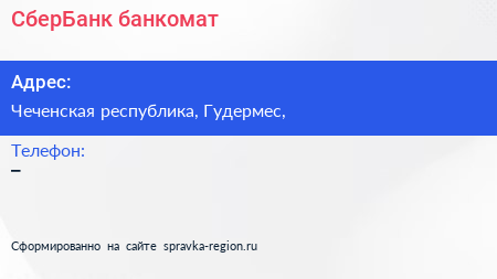 СберБанк, банкомат по адресу Чеченская республика, Гудермес, в дальнейшем Организация, размещена в следующих категориях: