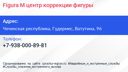 Figura M, центр коррекции фигуры по адресу Чеченская республика, Гудермес, Ватутина, 96 в дальнейшем Организация, размещена в следующих категориях: