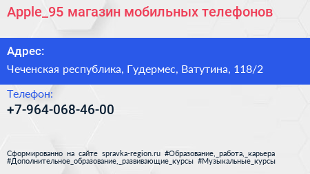 Apple_95, магазин мобильных телефонов по адресу Чеченская республика, Гудермес, Ватутина, 118/2 в дальнейшем Организация, размещена в следующих категориях: