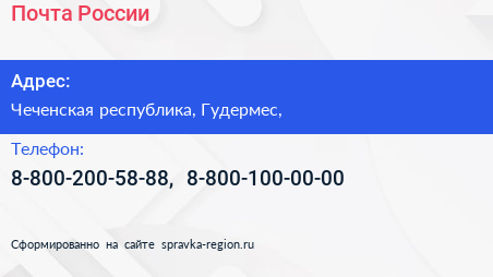 Почта России по адресу Чеченская республика, Гудермес, в дальнейшем Организация, размещена в следующих категориях:
