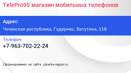 TelePro95, магазин мобильных телефонов по адресу Чеченская республика, Гудермес, Ватутина, 118 в дальнейшем Организация, размещена в следующих категориях: