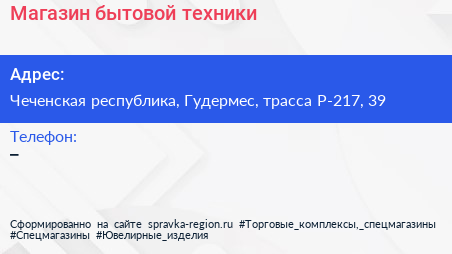 Магазин бытовой техники по адресу Чеченская республика, Гудермес, трасса Р-217, 39 в дальнейшем Организация, размещена в следующих категориях: