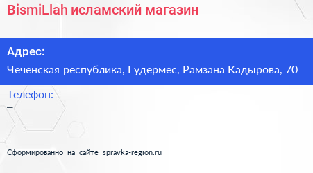 BismiLlah, исламский магазин по адресу Чеченская республика, Гудермес, Рамзана Кадырова, 70 в дальнейшем Организация, размещена в следующих категориях:
