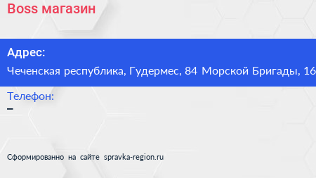 Boss, магазин по адресу Чеченская республика, Гудермес, 84 Морской Бригады, 16 в дальнейшем Организация, размещена в следующих категориях: