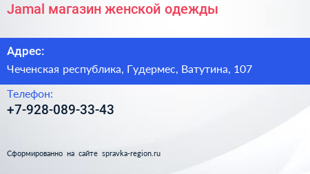 Jamal, магазин женской одежды по адресу Чеченская республика, Гудермес, Ватутина, 107 в дальнейшем Организация, размещена в следующих категориях: