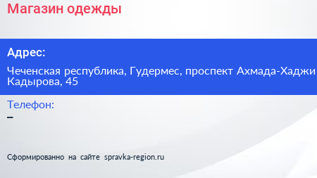 Магазин одежды по адресу Чеченская республика, Гудермес, проспект Ахмада-Хаджи Кадырова, 45 в дальнейшем Организация, размещена в следующих категориях:
