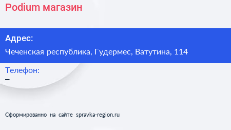 Podium, магазин по адресу Чеченская республика, Гудермес, Ватутина, 114 в дальнейшем Организация, размещена в следующих категориях: