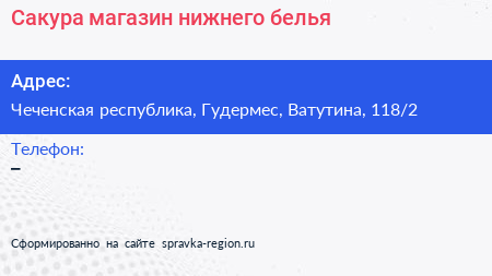 Сакура, магазин нижнего белья по адресу Чеченская республика, Гудермес, Ватутина, 118/2 в дальнейшем Организация, размещена в следующих категориях: