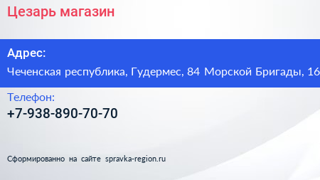 Цезарь, магазин по адресу Чеченская республика, Гудермес, 84 Морской Бригады, 16 в дальнейшем Организация, размещена в следующих категориях: