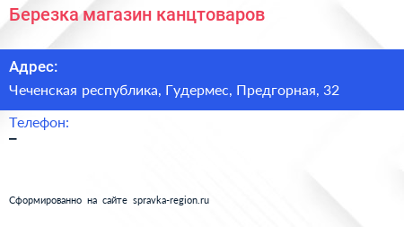 Березка, магазин канцтоваров по адресу Чеченская республика, Гудермес, Предгорная, 32 в дальнейшем Организация, размещена в следующих категориях: