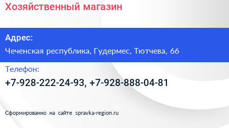 Хозяйственный магазин по адресу Чеченская республика, Гудермес, Тютчева, 66 в дальнейшем Организация, размещена в следующих категориях: