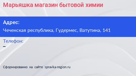 Марьяшка, магазин бытовой химии по адресу Чеченская республика, Гудермес, Ватутина, 141 в дальнейшем Организация, размещена в следующих категориях: