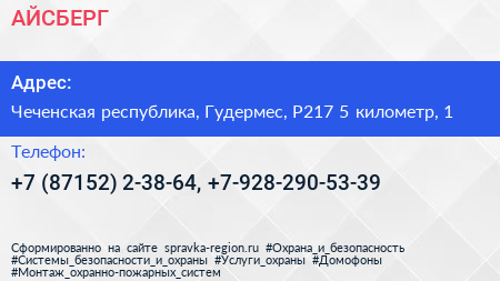 АЙСБЕРГ по адресу Чеченская республика, Гудермес, Р217 5 километр, 1 в дальнейшем Организация, размещена в следующих категориях: