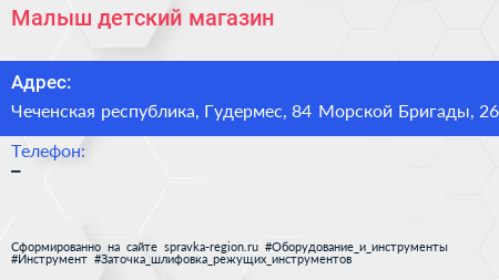Малыш, детский магазин по адресу Чеченская республика, Гудермес, 84 Морской Бригады, 26 в дальнейшем Организация, размещена в следующих категориях:
