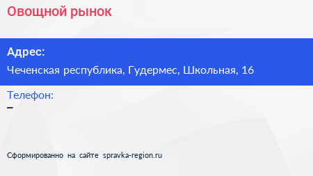 Овощной рынок по адресу Чеченская республика, Гудермес, Школьная, 16 в дальнейшем Организация, размещена в следующих категориях: