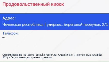 Продовольственный киоск по адресу Чеченская республика, Гудермес, Береговой переулок, 2/1 в дальнейшем Организация, размещена в следующих категориях: