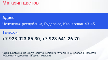 Магазин цветов по адресу Чеченская республика, Гудермес, Кавказская, 43-45 в дальнейшем Организация, размещена в следующих категориях: