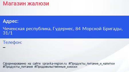 Магазин жалюзи по адресу Чеченская республика, Гудермес, 84 Морской Бригады, 31/1 в дальнейшем Организация, размещена в следующих категориях: